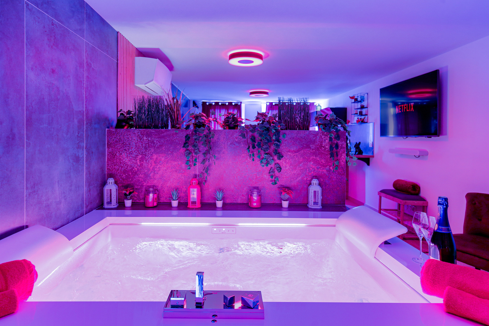 Parfait pour passer une soirée en amoureux, le jacuzzi est vraiment bien ainsi que le lit très confortable . Les différents services et équipement à disposition sont également très appréciable. Merci beaucoup pour ce séjour au top