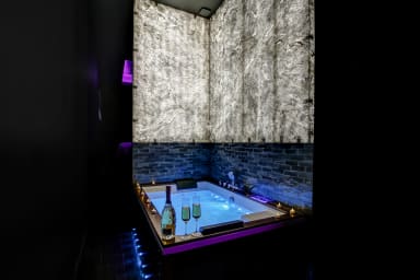 - Entrez dans ce cocon, aux allures de suite hôtelière, alliant espace détente avec une baignoire balnéothérapie romantique, un sauna apaisant et son lit de rêve